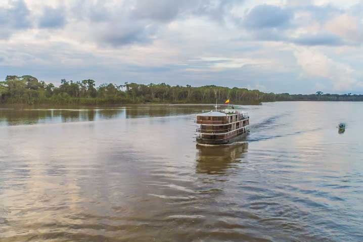 Traveling around the Ecuadorian Amazon is, in fact, a remarkable experience. This unforgettable event may occur while you walk through the forest and meet a troop of Red Howler Monkeys moving above the canopy, or when you spot a pair of brilliantly colored Scarlet Macaws darting through the treetops. Not only well known for its fantastic diversity of flora and fauna, the Ecuadorian Amazon is also home to an incredible variety of fascinating inhabitants and cultures. During our voyage you will have the opportunity to meet and interact with many different communities that live along the shores of the Napo River Basin.