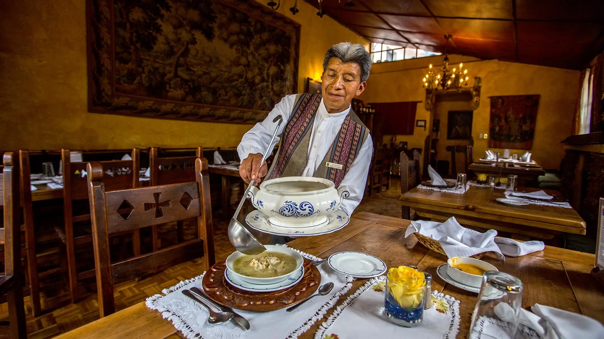 Hacienda Cusín is a restored colonial estate, over 400 years old, located near Otavalo, Ecuador. It offers a warm atmosphere with rooms featuring antiques, Andean crafts, and perennial gardens. Guests can enjoy Ecuadorian-international cuisine, bonfires, and outdoor activities like hiking and horseback riding. The hacienda also hosts weddings and conferences, making it an ideal spot for both relaxation and events. Located just 90 minutes from Quito, it serves as a great base to explore the culture and nature of the Imbabura region.