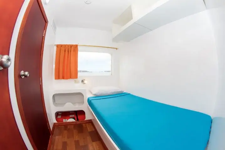 – Upper Deck: 1 matrimonial cabin + 1 twin cabin (shared bathroom)