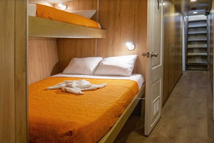 - Crew: 10 members (Includes 1 Instructor Guide and 1 Dive Master Guide. For naturalist cruise, 1 bilingual naturalist guide.