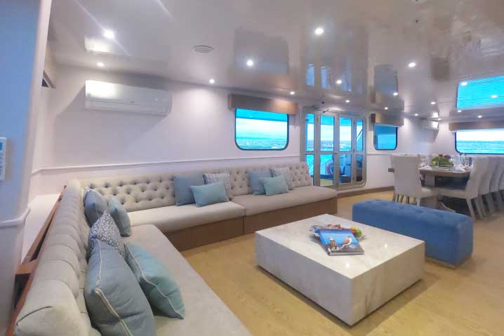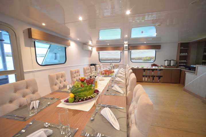 The ship offering well -furnished areas for comfort and privacy, allowing to relax with the good company of friends and family while sailing in the Galapagos Islands. Spacious staterooms with a maximum capacity of 16 passengers allowing both intimacy and camaraderie at the same time.