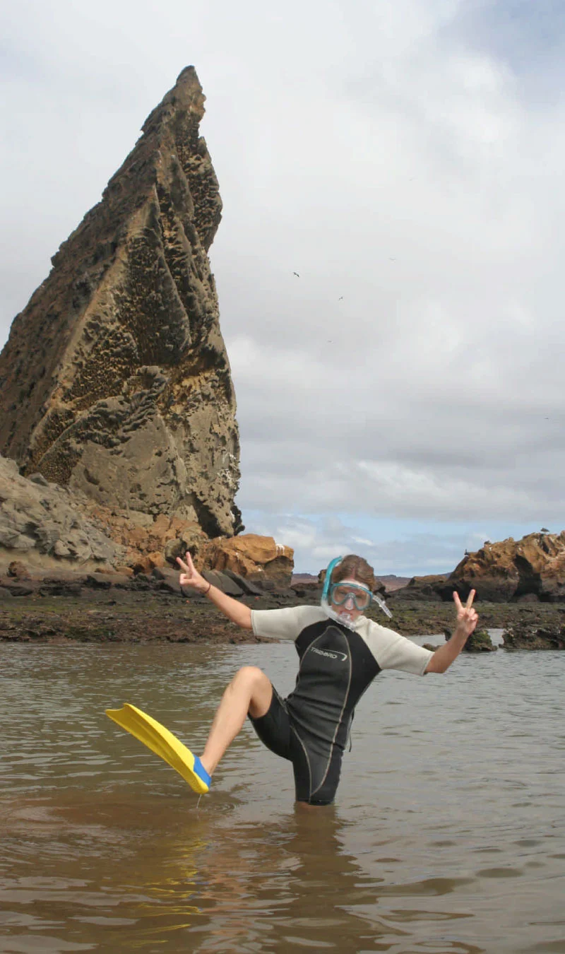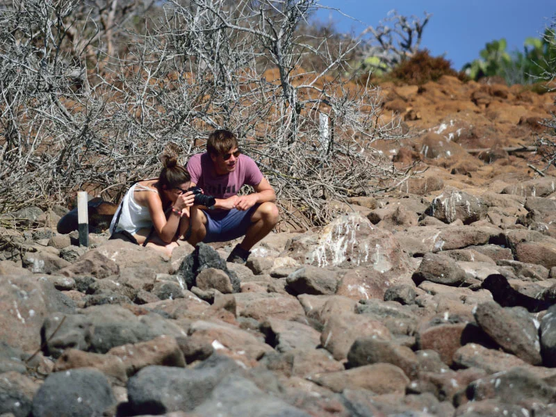 Prepare yourself for one of the best days of this trip! After sailing for 45 minutes from Puerto Villamil, we will reach Cape Rosa on the western side of the island. This is one of the most beautiful and amazing places nature has bestowed upon humankind. Here we can walk over the connected lava tunnels surrounded by the crystal sea waters.