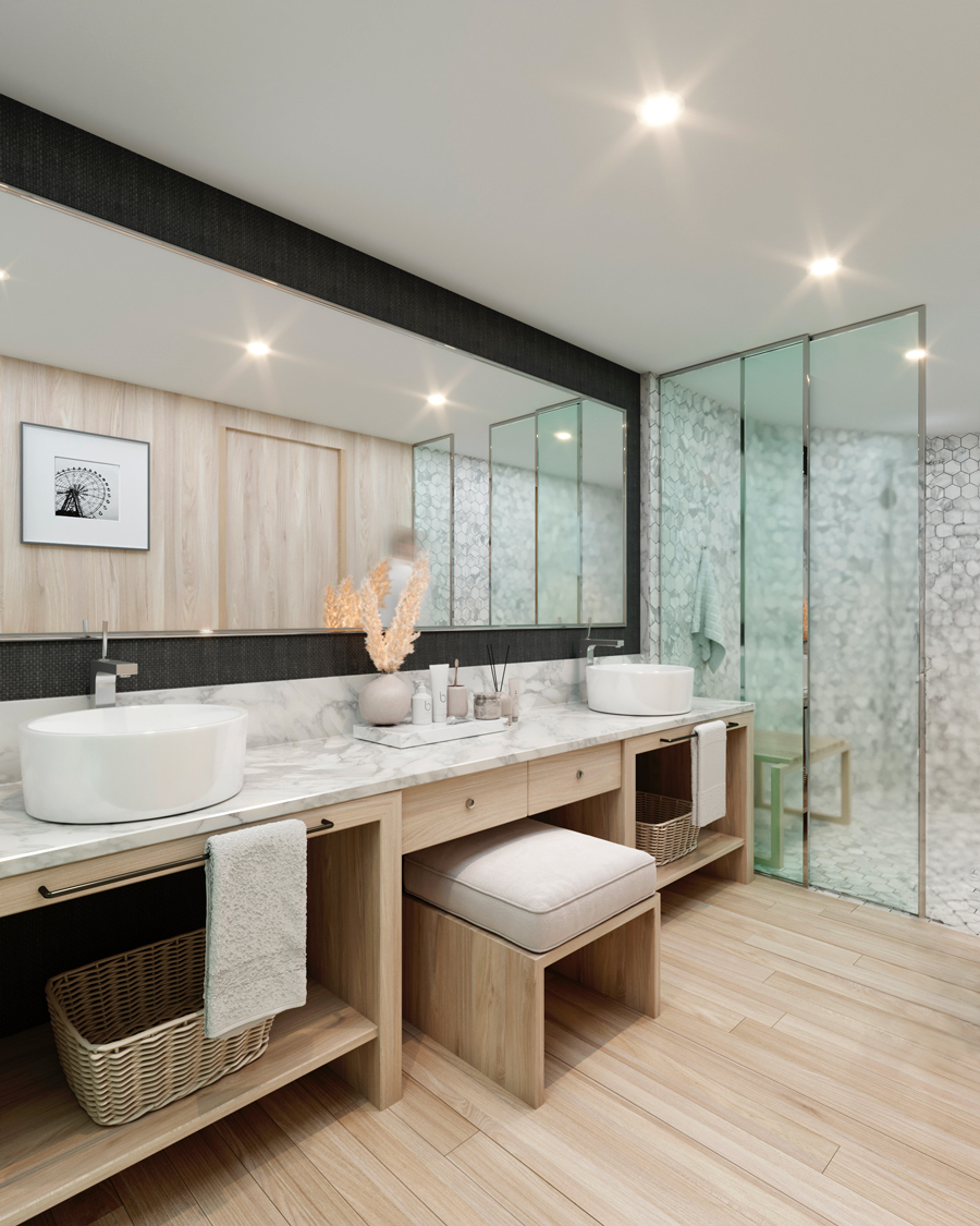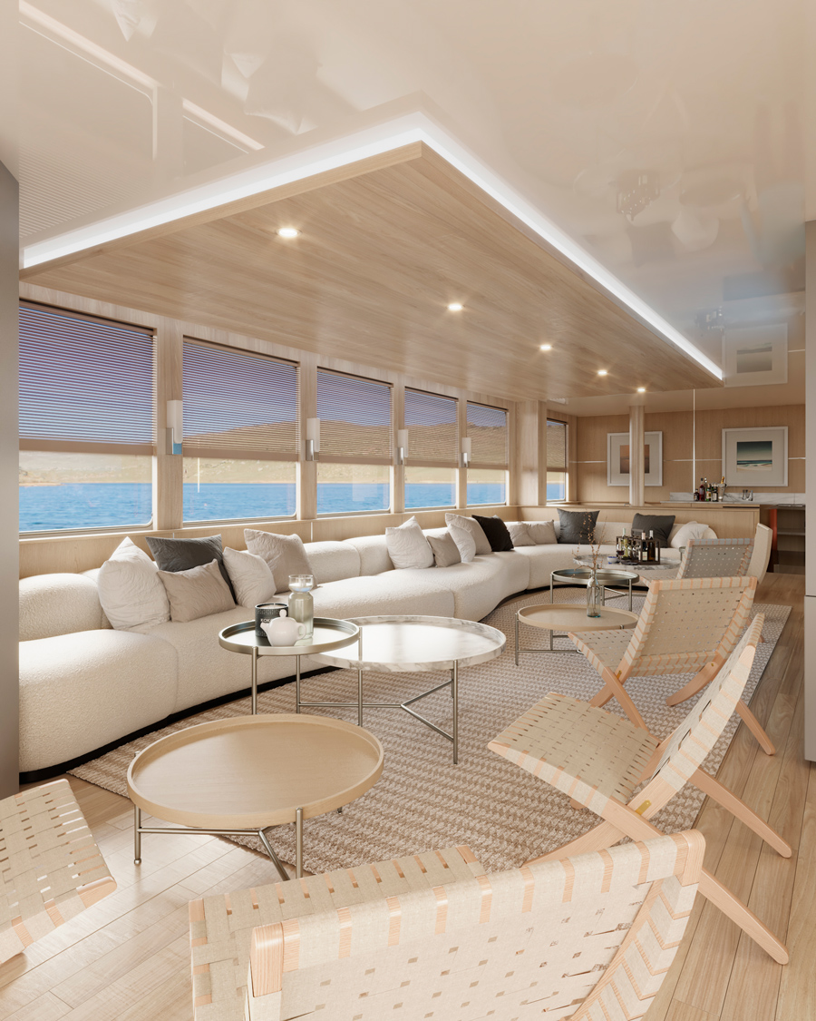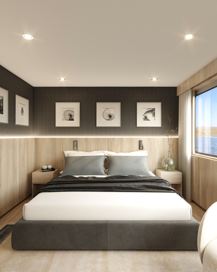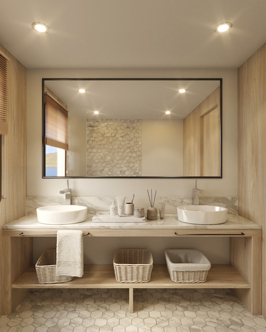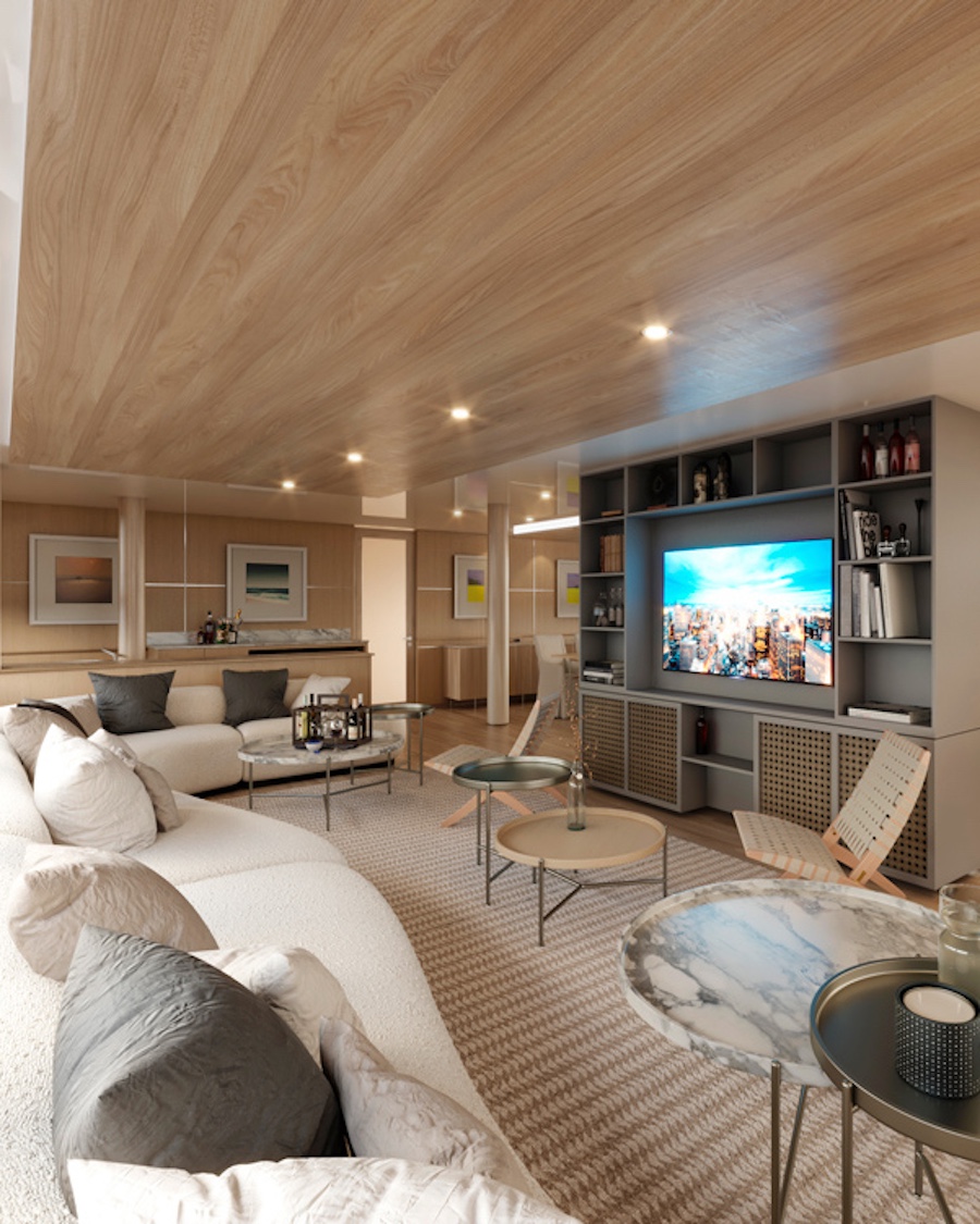 The ship features premium suites, meticulously designed to provide a sanctuary of comfort and style. From the Panorama Suites, which offer spacious elegance, to the Premium Suites, with added features such as a convertible sofa and additional storage, and the spacious 50 m2 owner’s suite, all accommodation options reflect opulence.